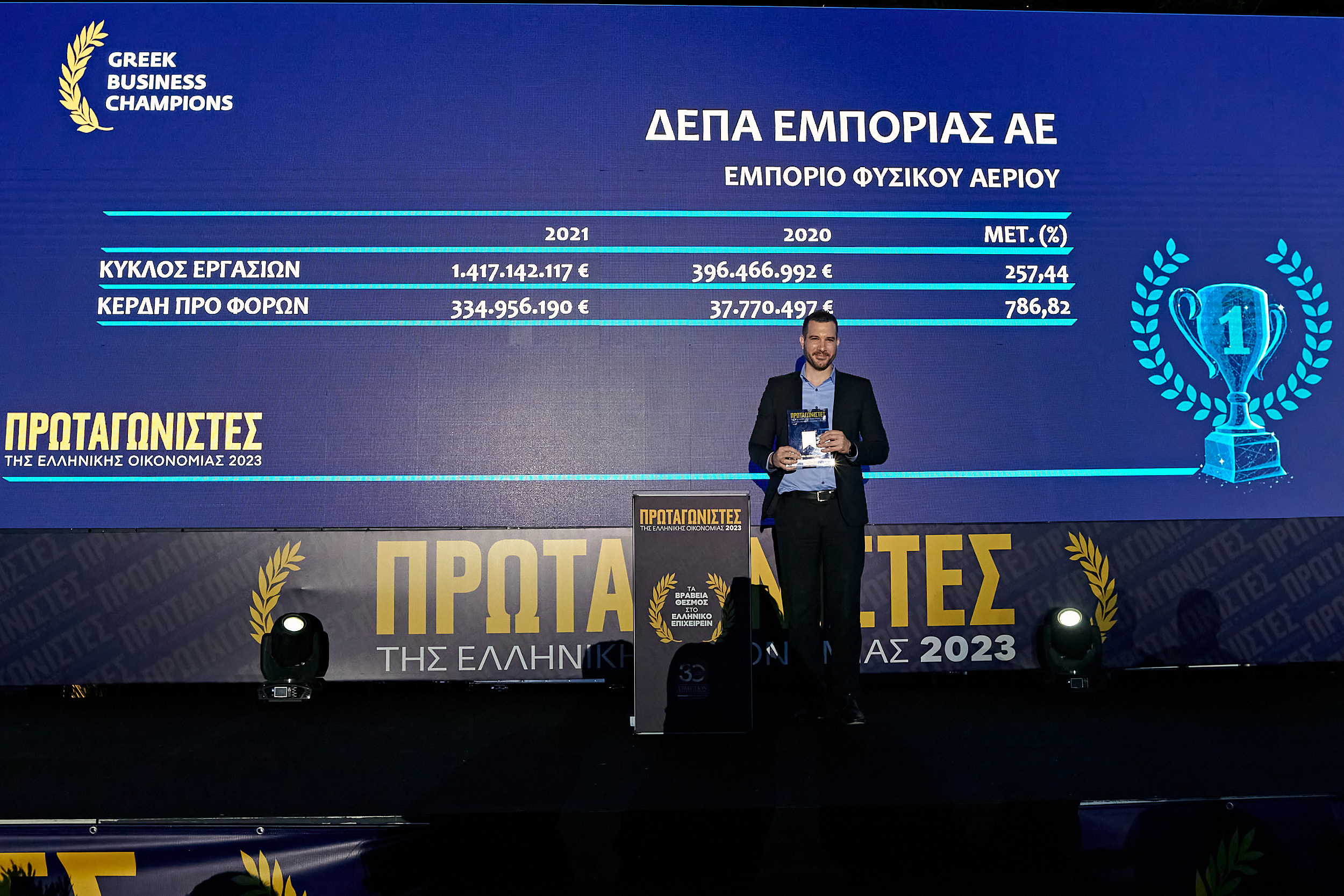 Μια ακόμα αναγνώριση για την πρωταγωνιστική της πορεία στο ελληνικό επιχειρείν απέσπασε η ΔΕΠΑ Εμπορίας καθώς αναδείχθηκε Greek Business Champion στο πλαίσιο των Βραβείων «Πρωταγωνιστές της Ελληνικής Οικονομίας 2023». Πρόκειται για την 8η διοργάνωση του συγκεκριμένου θεσμού, που επιβραβεύει τις επιχειρήσεις εκείνες που διακρίνονται, ανοίγοντας δρόμους και στηρίζοντας έμπρακτα την ελληνική οικονομία.